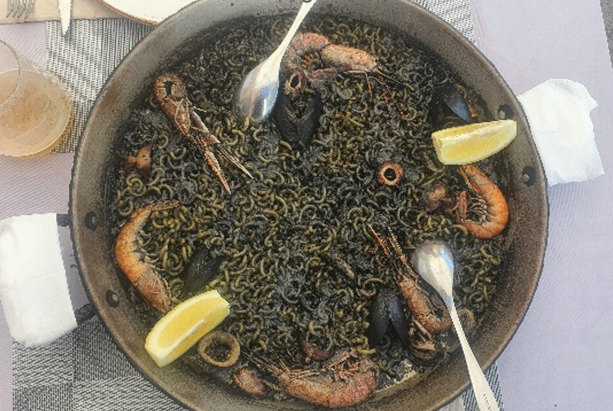 Fidéua Negra***die schwarze Paella mit der Tinte des Tintenfisches und Meeresfrüchten***